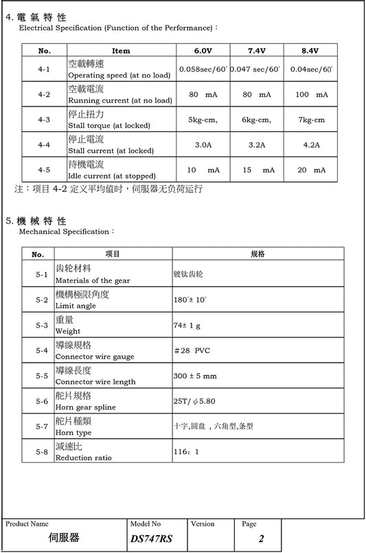 DS747RS 760μs Rudder Servo